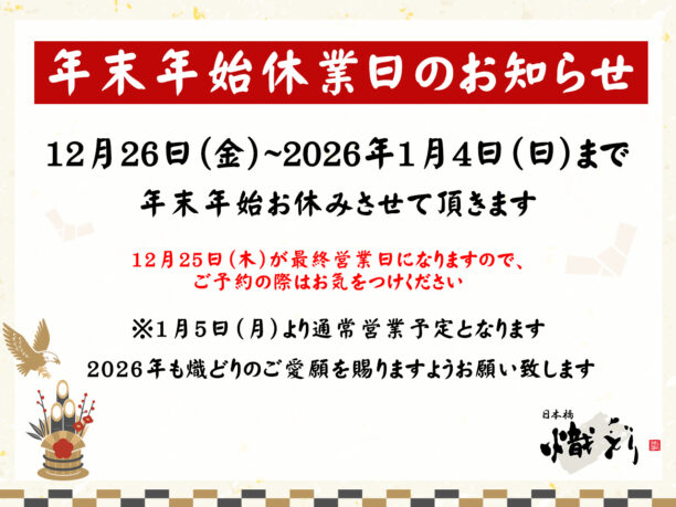 ※12月25日(木)が最終営業日